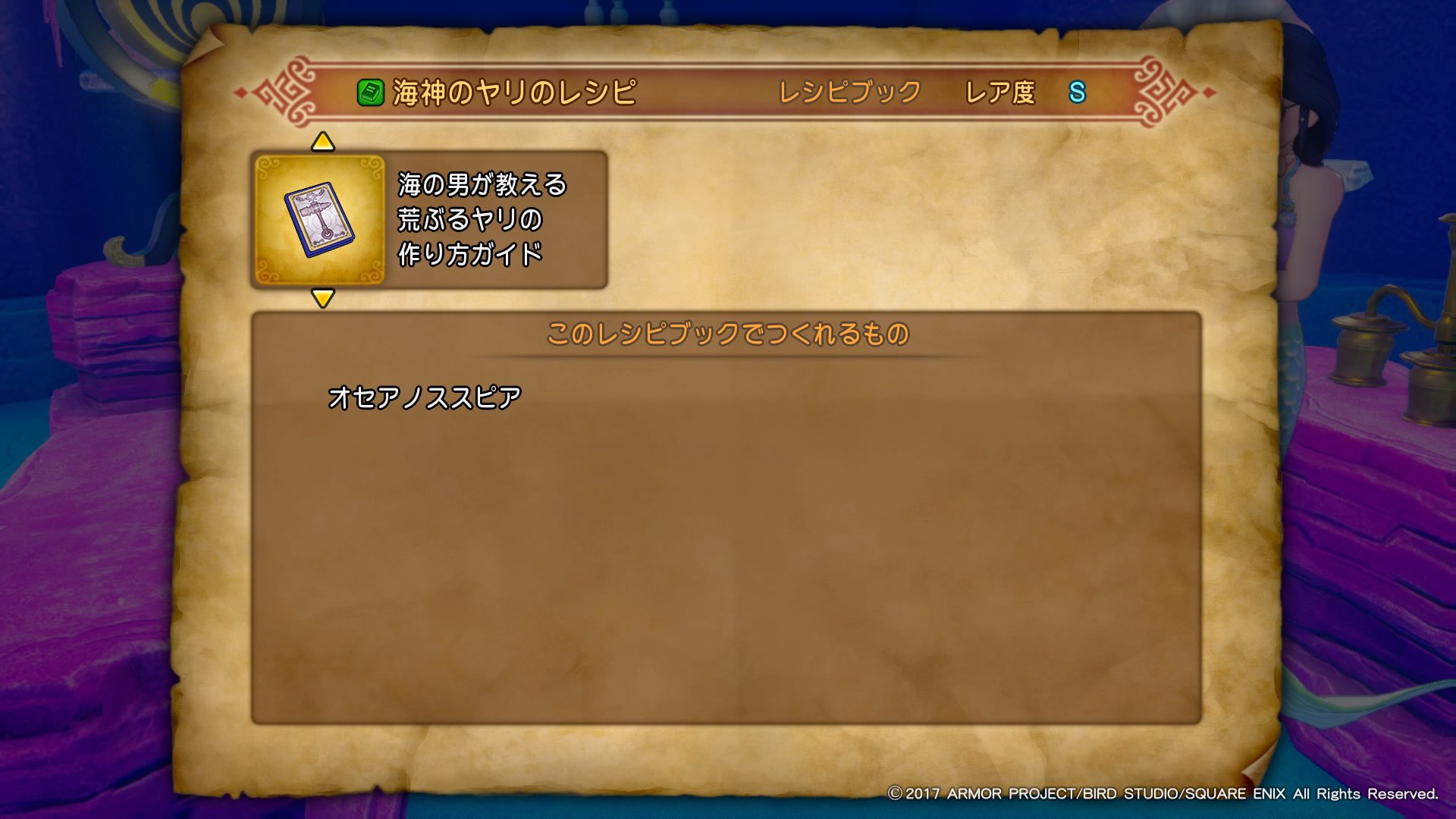 とびっきりの大砲を入手して報告するとクエストクリア。報酬の海神のヤリのレシピではオセアノススピアを作成できるようになる。