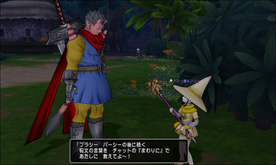 さばきの杖を渡すと次は、バシルーラの呪文の言葉を忘れたらしい。プラシー バーシーの続きを言えと?知りません…なのでレンドアで確認。