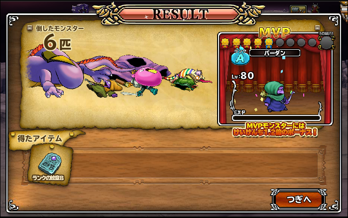ブラウザゲームのドラゴンクエストモンスターパレードのストーリーが7月14日に追加されたのでクリアしてきました。今回はレベル上げイベント(※むしろこのイベントじゃなきゃレベル上がらない)メタル祭りと同時に実装なのでストーリーは後回しになりそうですね。一応宝箱に魅力的なアイテムなんかもありましたよっと。なんかバグもあったみたいですね